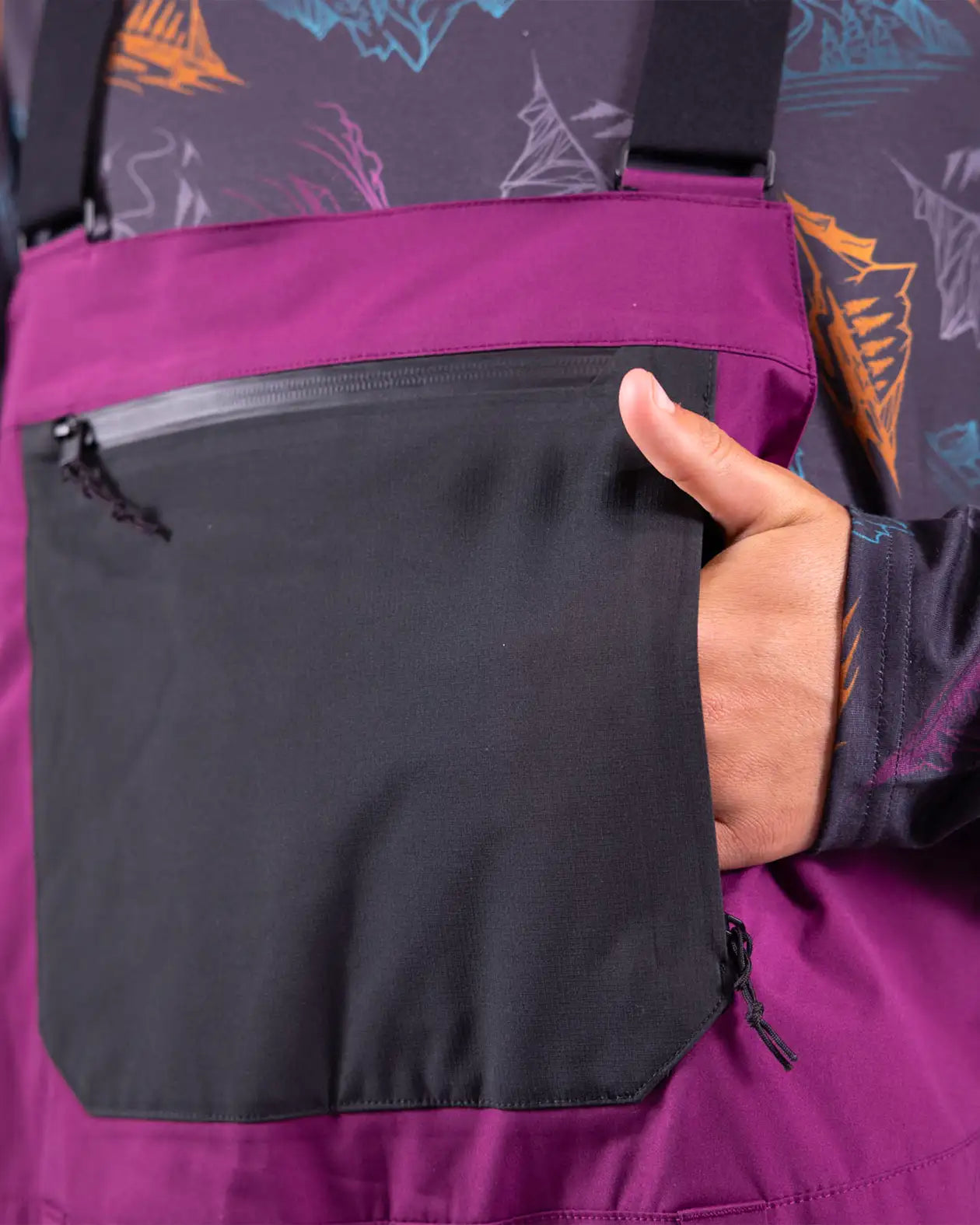 The MTN Surf Recycled Bibs are super comfortable and functional 2L bibs made with a body mapped 100% recycled fabric layout that you can live in all season. The bibs are lined with 100% recycled stretch polyester and offer the perfect balance of mobility, breathability and protection.
