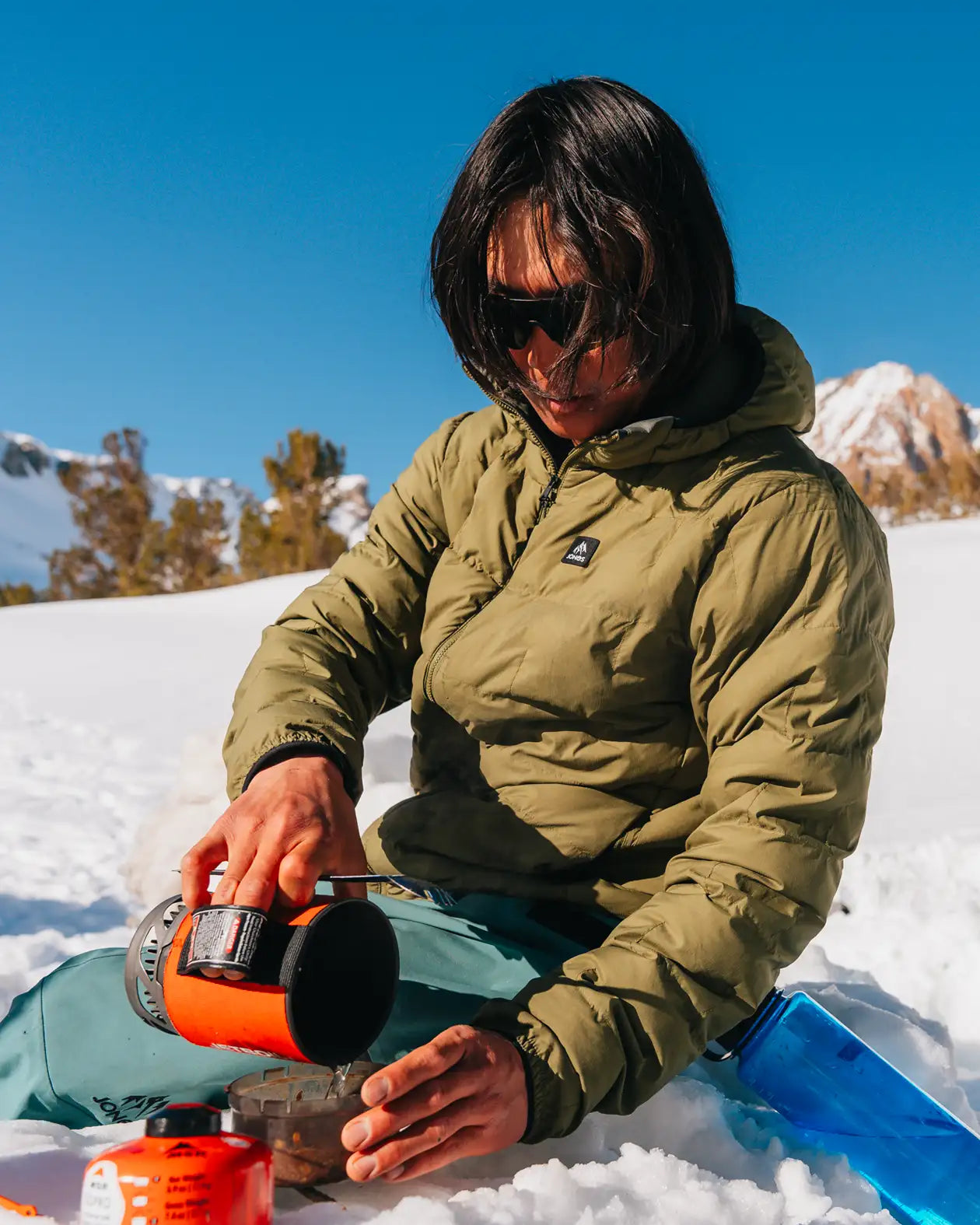 Made out of 100% recycled four-way stretch polyester with PFC-Free DWR and insulated with 100% recycled Air Flake synthetic insulation.