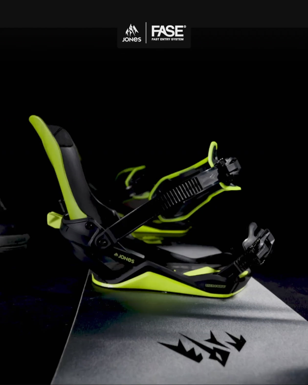 The Mercury FASE® binding is a next generation all-mountain freeride binding built for riders seeking performance and progression. It enhances the locked-in feel of a traditional two-strap binding while delivering all-day comfort and precise response, now featuring the FASE® Fast Entry System for faster entry and exit without compromise. Fully compatible with all snowboard boots, the Mercury FASE is built to perform in every condition and terrain. Seamlessly designed to integrate the FASE System, the size Medium weighs just 895 g (31.6 oz) per binding and has the same weight and volume as other Jones models.